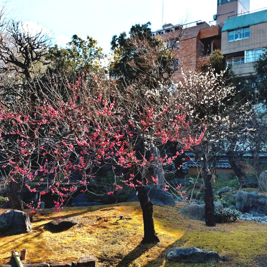 湯島天神のお庭の梅はいろいろな種類があって
